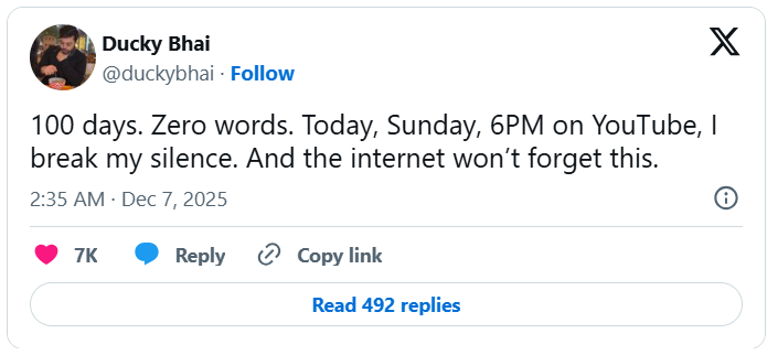 She also asked the public not to listen to rumours and misinformation, saying Ducky Bhai would soon be back and “working stronger than before.”